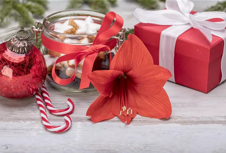 Im Supermarkt, in der Gärtnerei oder auf dem Adventsmarkt - zur Weihnachtszeit gibt es Amaryllis nahezu überall zu kaufen. Mit etwa 600 verschiedenen Unterformen ist diese Weihnachtspflanze eine sehr vielfältige Zwiebelblume und erstrahlt von dunklem Rot bis hin zu strahlendem Weiß. Die mächtigen, hoch aufragenden Blüten der Amaryllis präsentieren sich Mitte Dezember – pünktlich zu Weihnachten.