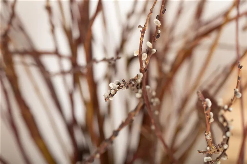 Ein lebender Weidezaun ist eine schöne Alternative zu herkömmlichen Drahtzäunen. Möchten Sie im Frühjahr einen anlegen, schneiden Sie schon jetzt im Februar junge, fingerdicke Triebe der Weide. Verpacken Sie die frischen, noch in Winterruhe befindlichen Äste in eine Plastiktüte und verschließen Sie diese gut. Gelagert werden die Äste an einem kühlen Ort bei wenigen Grad über Null, zum Beispiel in der Garage. Ab Mitte März können die Weidenruten 10 bis 15 cm tief in den Boden gesteckt werden. Bis zur Bewurzelung sollte die Erde immer gleichmäßig feucht gehalten werden.