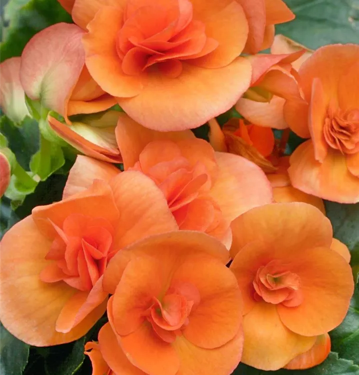 Begonia elatior, orange bildet während der gesamten Saison zahlreiche schalenförmige, orangefarbene Blüten.