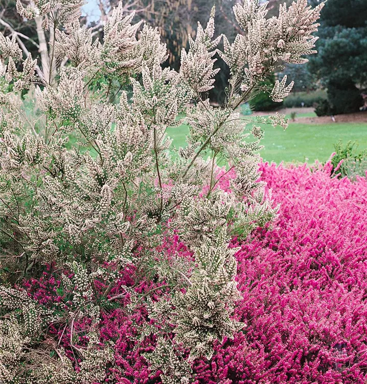 Die Baumheide (Erica arborea) wird durch ihre unzähligen Blüten in vielen Farben jeden Garten verschönern. Gekonnt kombiniert mit anderen in Größe und Farbe passenden Pflanzen – in Kübeln oder Kästen, macht sie auch auf der Terrasse eine schöne Figur.