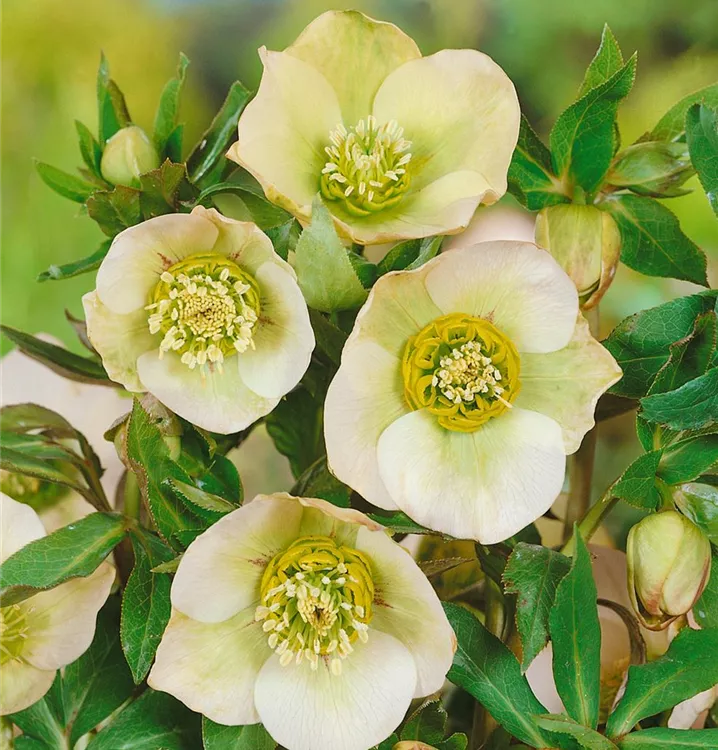 Die Frühlings-Nieswurz (Helleborus orientalis) ist eine aufrechte wintergrüne Staude, die, je nach Sorte, schalenförmige Blüten in verschiedenen Farben bildet. An einem sonnigen bis halbschattigen Standort mit durchlässigem, nährstoffreichem Boden erreicht sie gewöhnlich eine Höhe von ca. 40 cm und wird ca. 50 cm breit. Die Frühlings-Nieswurz ist gut frostverträglich.