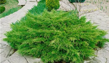 Der Gemeine Wacholder (Juniperus communis) ist ein Großstrauch, welcher säulenförmig wächst und gewöhnlich eine Höhe von ca. 8 m und eine Breite von ca. 3 m erreicht. Seine nadelförmigen Blätter haben eine blau-grüne Färbung. Dekorative schwarz-braune Zapfen zieren Juniperus communis ab September. Dieses Gehölz ist gut frostverträglich. Er bevorzugt durchlässigen Boden in sonniger Lage.