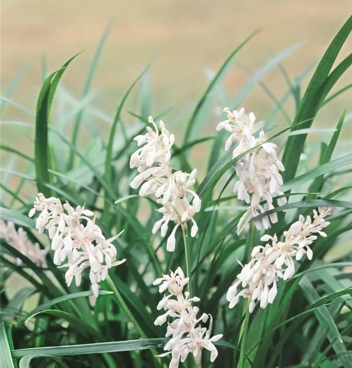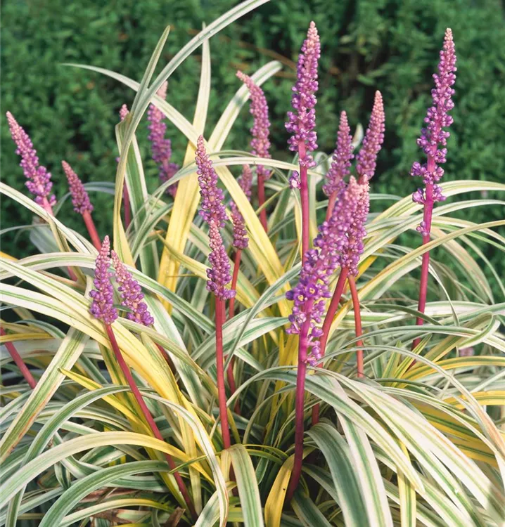 Die Träubel-Glöckchentraube (Liriope muscari) ist eine aufrechte wintergrüne Staude, die von August bis Oktober blauviolette, in Rispen angeordnete Blüten bildet. An einem halbschattigen bis schattigen Standort mit durchlässigem, humosem, kalkfreiem, lockerem Boden erreicht sie gewöhnlich eine Höhe von ca. 40 cm und wird ca. 30 cm breit. Die Träubel-Glöckchentraube ist gut frostverträglich.