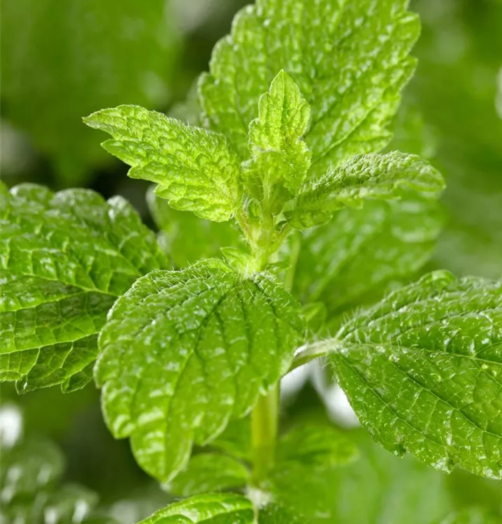 Zum Verzehr geeignet. Die hellgrünen, gesägten Blätter sind eiförmig und überzeugen mit aromatischem Geschmack.