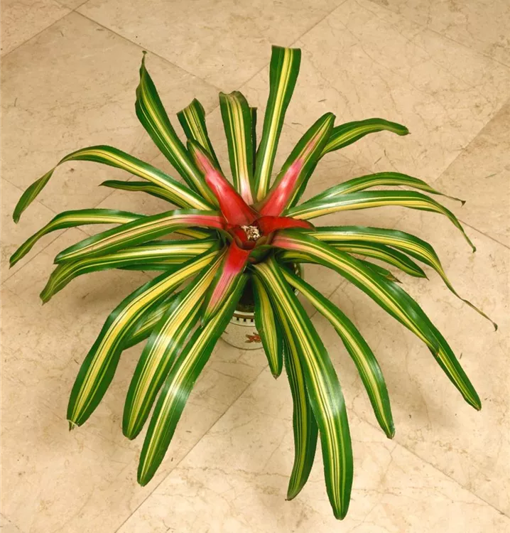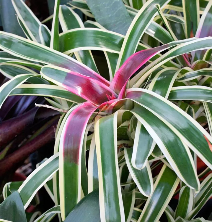 Die Neoregelie (Neoregelia carolinae) blüht über Monate hinweg. Je nach Sorte, erscheinen die dekorativen Blüten in den Farben Weiß, Gelb, Orange, Rot, Rosa und Lila. Bevorzugt wird ein sonniger Standort und eine durchlässige Erde.