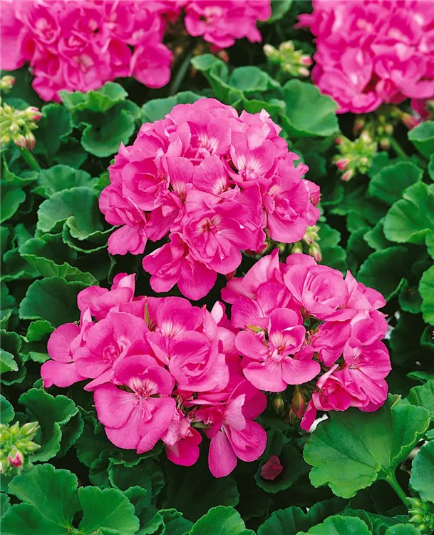 Die Zonal-Pelargonie (Pelargonium zonale) ist eine beliebte Pflanze für den Balkon. Die unzähligen Blüten erscheinen, je nach Sorte, in verschiedenen Farben die ganze Saison hindurch. Ein sonniger bis halbschattiger Standort und ein durchlässiges Substrat werden bevorzugt.