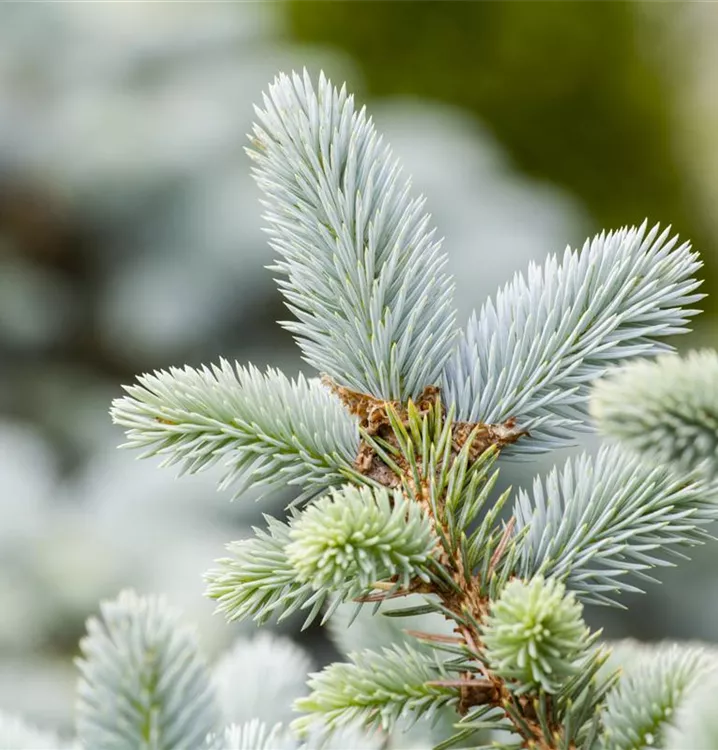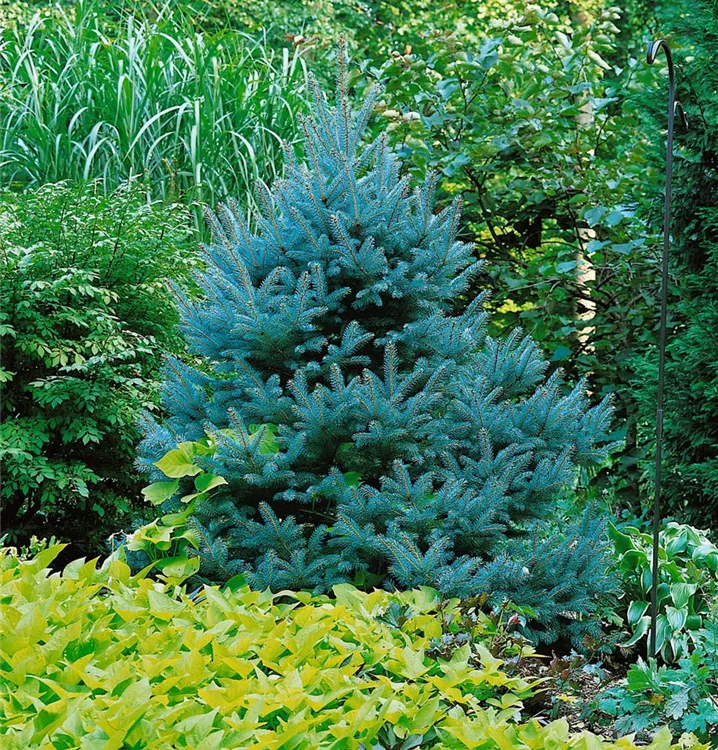 Die Blaue Stechfichte 'Glauca' (Picea pungens) ist ein Baum, welcher kegelförmig wächst und gewöhnlich eine Höhe von ca. 20 m und eine Breite von ca. 8 m erreicht. Ihre nadelförmigen Blätter haben eine blau-graue Färbung. Dekorative hellbraune Zapfen zieren Picea pungens 'Glauca' ab September. Dieses Gehölz ist gut frostverträglich. Sie bevorzugt durchlässigen Boden in sonniger Lage.