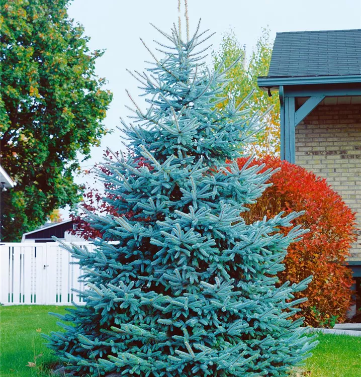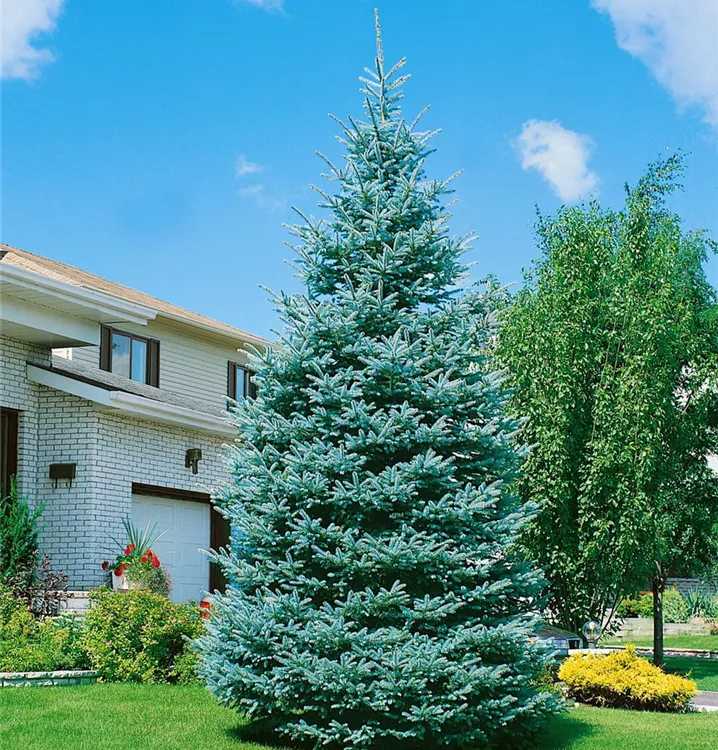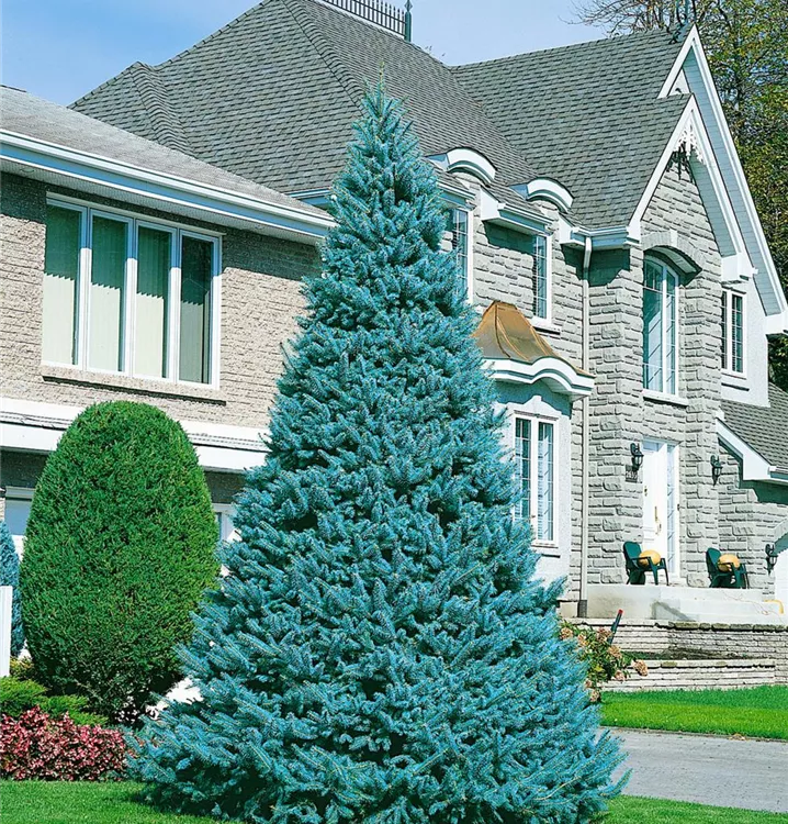 Blaue Stechfichte 'Glauca' ist ein kegelförmig wachsender Baum. Sie erreicht gewöhnlich eine Höhe von 15 - 20 m und wird ca. 6 - 8 m breit. Rasch wachsend. In der Regel wächst sie 20 - 30 cm pro Jahr.