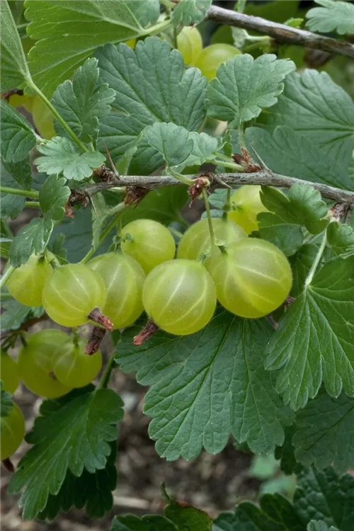 Die Stachelbeere (Ribes uva-crispa) bildet grüngelbe Beeren. Diese sind süß im Geschmack. Für eine ertragreiche Ernte ab Juli schaffen durchlässiger, lockerer, nährstoffreicher Boden und ein sonniger bis halbschattiger Standort optimale Bedingungen. Auch ihre weißen Blüten sind eine schöne Erscheinung.