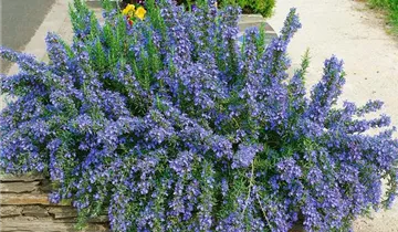 Der Mattenförmige Garten-Rosmarin (Rosmarinus officinalis) ist eine angenehm duftende Kräuterpflanze mit einem milden Geschmack. Seine grau-grünen Blätter sind lanzettlich. Für das optimale Wachstum des Mattenförmigen Garten-Rosmarins werden ein sonniger Standort und durchlässiger, nährstoffreicher Boden benötigt.