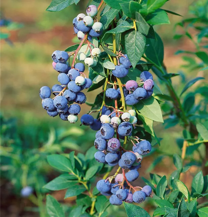 Die Heidelbeere 'Elisabeth' (Vaccinium corymbosum) bildet blaue, große Beeren. Säuerlich, erfrischend im Geschmack, ist die Heidelbeere 'Elisabeth' fest und besitzt eine glatte Schale. Für eine ertragreiche Ernte ab August schaffen humoser, sandiger, feuchter bis nasser Boden und ein sonniger bis halbschattiger Standort optimale Bedingungen. Auch ihre hellrosafarbenen Blüten sind eine schöne Erscheinung.
