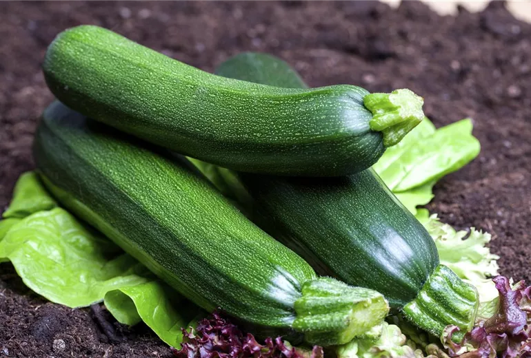 Zucchini tragen im Normalfall so viele Früchte, dass eine vierköpfige Familie schon mit ein bis zwei Pflanzen gut versorgt ist. Nur in regnerischen und kalten Sommern bilden die Pflanzen zwar viele Blüten, setzen aber kaum an bzw. die Früchte wachsen nicht voll aus. Grund ist meist eine unzureichende Bestäubung der Blüten. Die Lösung ist recht einfach, sie müssen nachhelfen. Wichtig dabei ist zu wissen, dass Zucchini männliche und weibliche Blüten an einer Pflanze bilden. Zur Bestäubung pflücken Sie eine voll entwickelte männliche Blüte ab und streichen den Pollen auf die weibliche Narbe. Die weiblichen Blüten erkennen Sie an den kürzeren Stielen und an der Verdickung, die sich unterhalb der Blütenblätter zeigt.