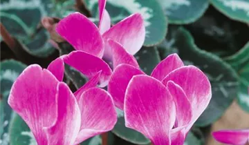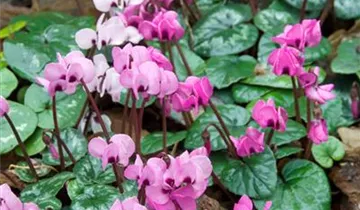 Das Alpenveilchen (Cyclamen) ist eine Zwiebelpflanze mit ansehnlichen Blüten. Bevorzugt wird ein durchlässiger, lockerer Boden in sonniger bis halbschattiger Lage. Die Staude erreicht gewöhnlich eine Höhe von 15 - 25 cm.
