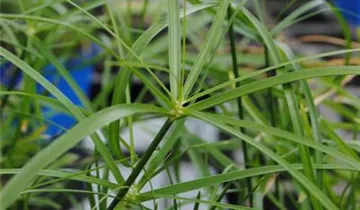 Das Zypergras (Cyperus alternifolius) bildet Blüten, je nach Sorte, in vielen Farben von Juli bis September.Es bevorzugt durchlässigen, nährstoffreichen, lehmigen Boden in sonniger bis halbschattiger Lage. Die horstbildende Staude erreicht gewöhnlich eine Höhe von ca. 1 m.