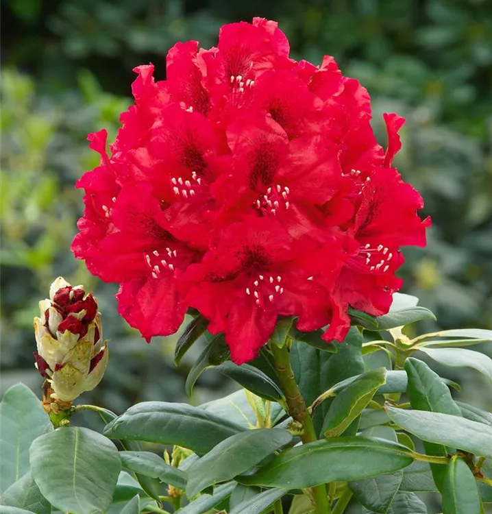 Der Kalktolerante Rhododendron ist immergrün und trägt dunkelgrüne lanzettliche Blätter.